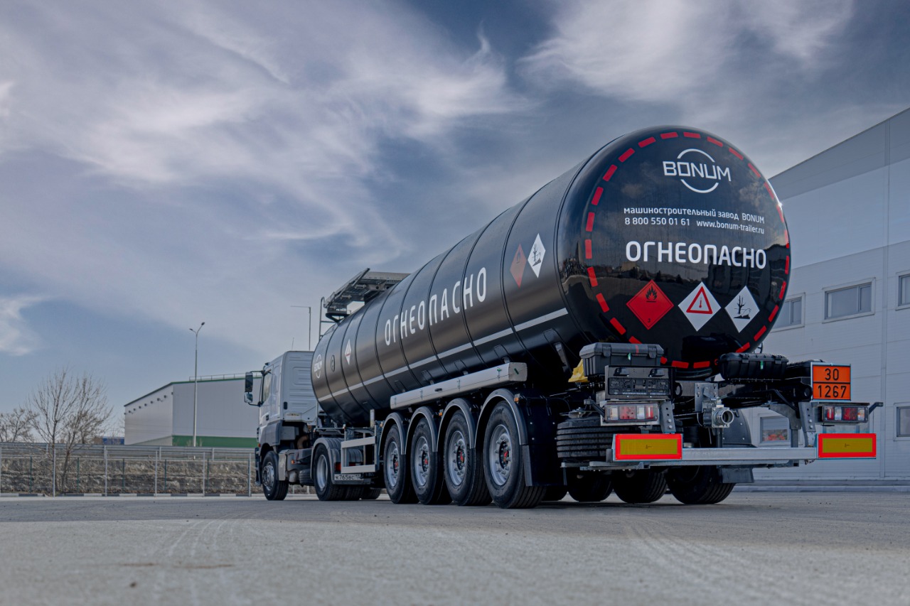 Полуприцеп-цистерна модели 914221  предназначена для транспортирования темных нефтепродуктов (битум, нефть, нефтесодержащие жидкости), материал цистерны низколегированная сталь 09Г2С.