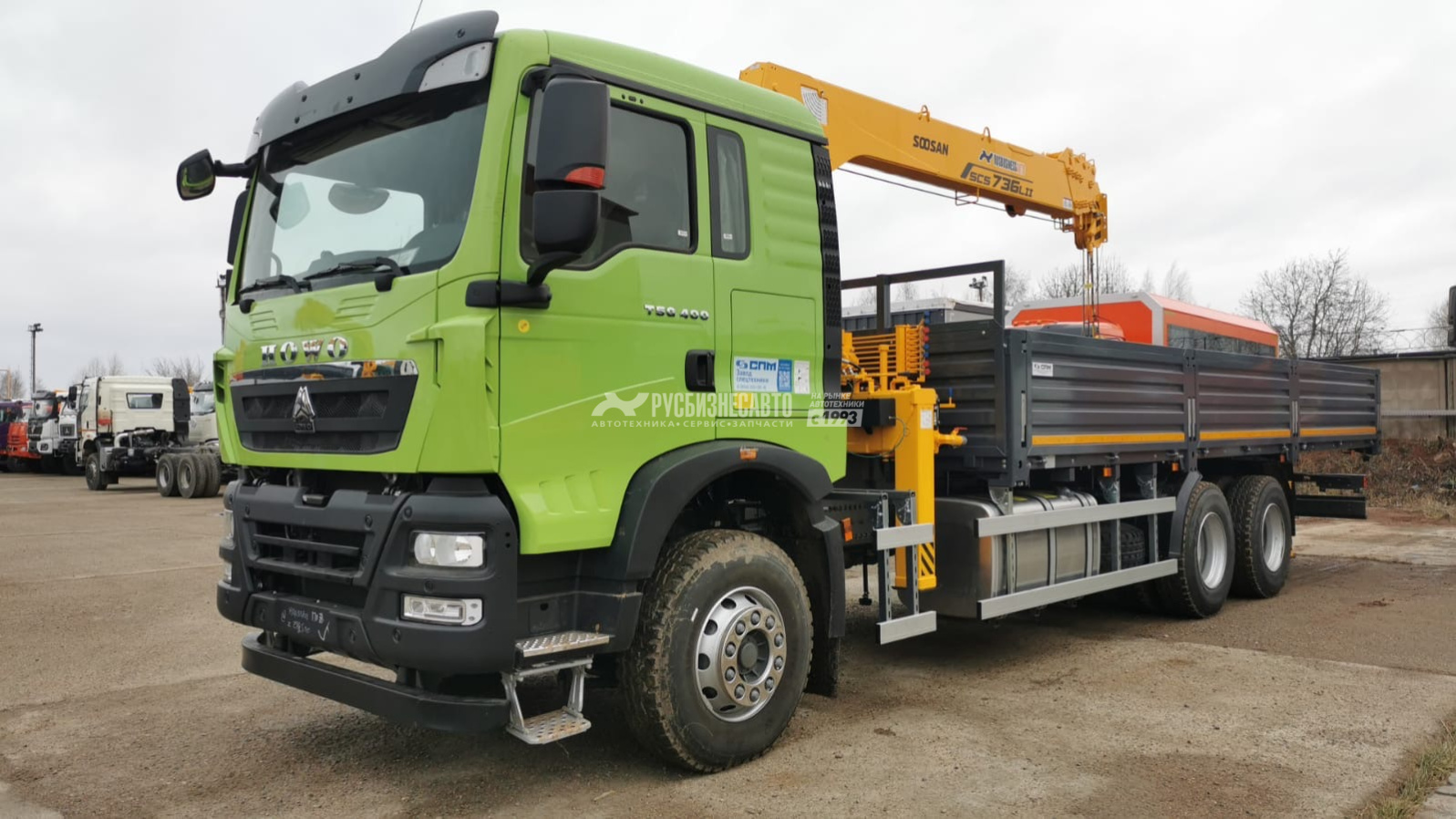 КМУ HOWO T5G (6*4, 400л.с., Евро-5) + SOOSAN SCS736LII верх.упр. + борт сталь 8,0м. СПМ