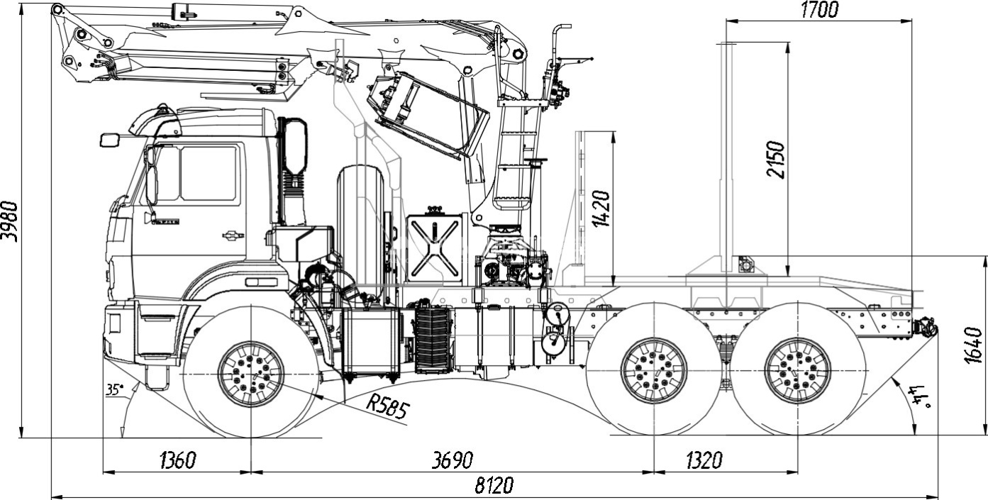 Технические характеристики КМУ Лесовоз КАМАЗ 43118-23027-50 (Евро-5, без спалки) + КМУ VM10L74 за кабиной