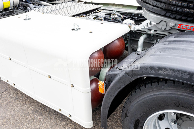 ● Основные данные - Собственный вес, кг – 8050 - Полная масса автопоезда, кг – 44 000 - Нагрузка на переднюю ось, кг – 7000 - Нагрузка на заднюю ось, кг – 13 000 - Высота ССУ, мм – 1160 без нагрузки, 1130 под нагрузкой - Шкворень JOST 2" ● Двигатель MT13.46-51 (газовый) - Мощность 460 лс - Максимальный крутящий момент, Нм - 2250 - Экологический стандарт Евро 5 - Газовая топливная аппаратура (сжиженный метан) - Круиз-контроль - Моторный тормоз EVB ● Коробка передач - HW25716XAL (S-AMT) с ретардером+КОМ - АКПП (роботизированная) - Число передач КП 16+2 - Максимальный крутящий момент, Нм - 2500 ● Шасси - Подвеска передняя рессорная VPD95ES 9,5т - Подвеска задняя пневматическая MCY13JES 13т - Стандартная комплектация включает задний стабилизатор поперечной устойчивости - Система хранения сжат.газа 4х120 + 4х120л - Рулевой механизм Bosch - Дисковые тормоза - Шины 315/70R22,5, стальные диски - Электронная тормозная система EBS WABCO   - Система курсовой устойчивости ESC