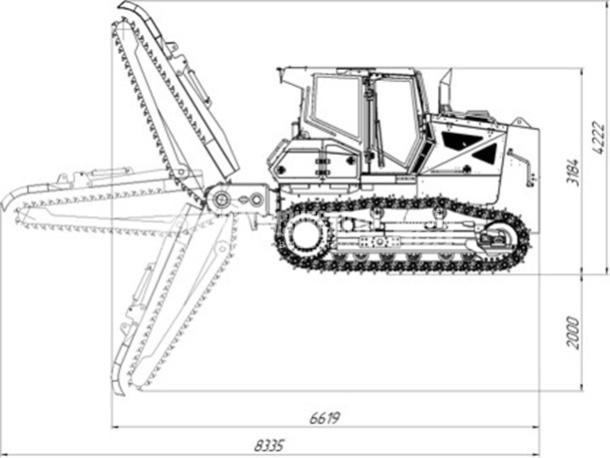 – Траншеекопатель АТМ.00.00.000-03: ширина 400 мм; глубина 2000 мм, привод от гидромотора (ходоуменьшителя)