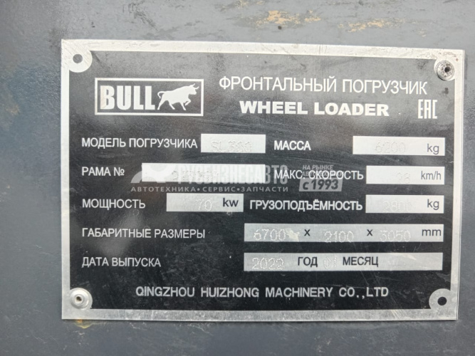 Технические характеристики Погрузчик фронтальный одноковшовый BULL SL300 б/у (2022 г., 135 м/ч)