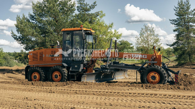- Полноповоротный грейдерный отвал обеспечивает высокие технологические возможности автогрейдера
