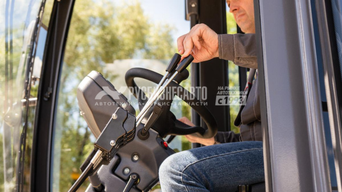 - Новые органы управления рабочим оборудованием - короткие рычаги с малым ходом, установленные на регулируемой рулевой колонке