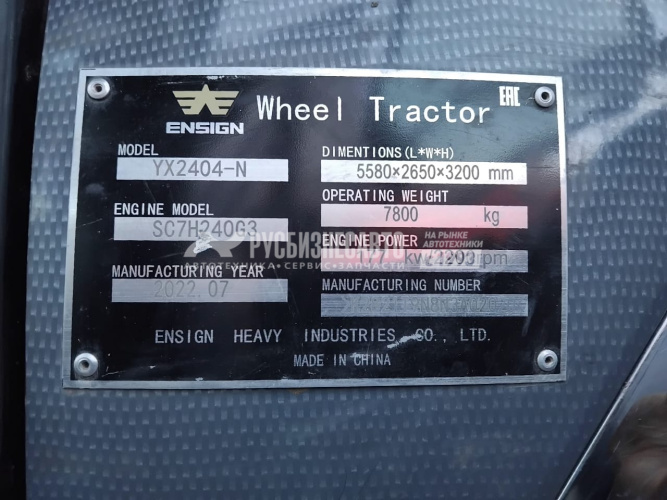 Технические характеристики Трактор колесный ENSIGN YX2404-Nб/у (2022г.в. 1 833 м/ч)(2020)-Сбер комиссия