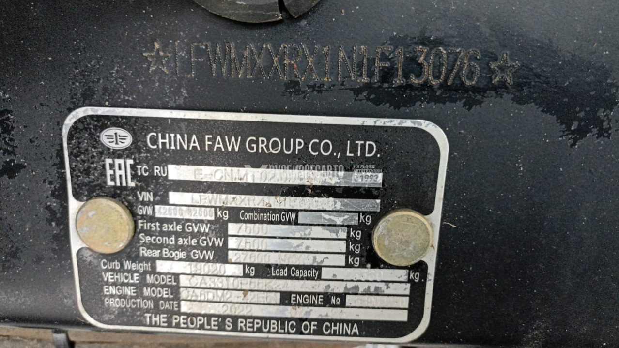 | Размерность шин | 315/80 R 22.5 или 12.00 R 20 |
