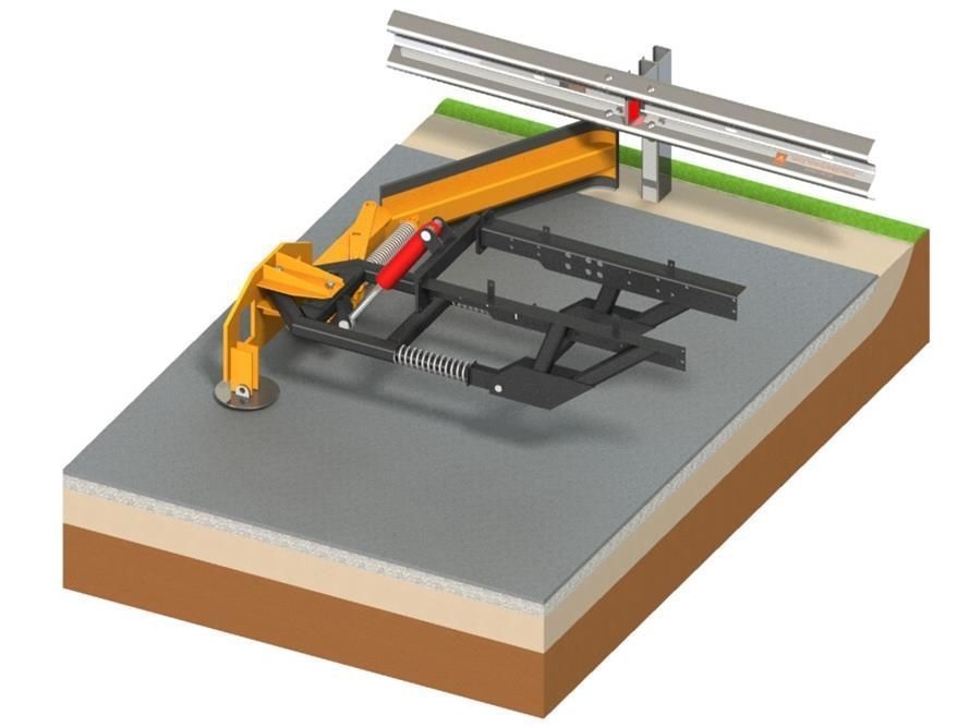 Плавающий режим работы отвала, опирающегося на сферические опоры, обеспечивает отслеживание продольного профиля дороги, а пружина позволяет обходить стойки барьерных ограждений не повредив их.